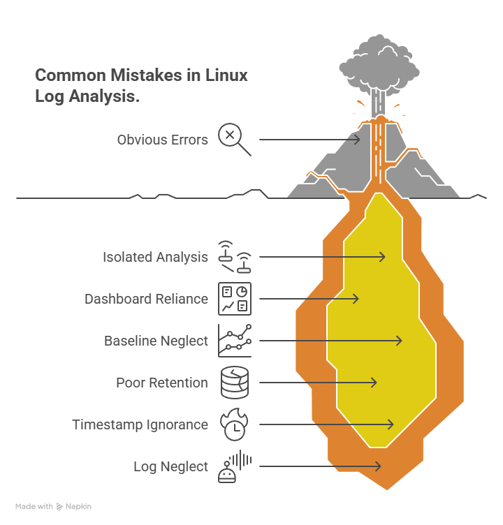 Now, let’s look at some common mistakes engineers often make when working with Linux logs.