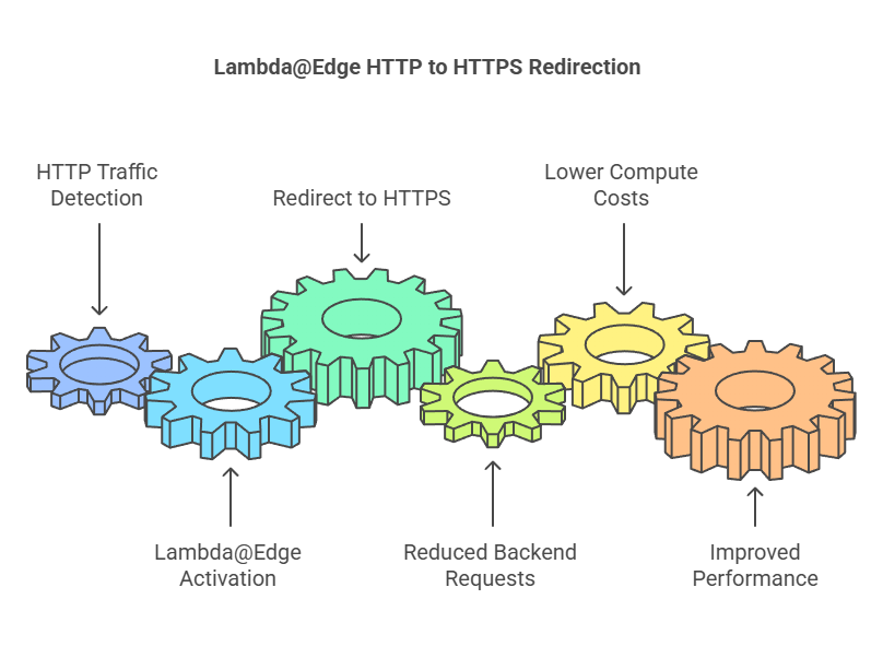 Example: A global e-commerce platform using Lambda@Edge to redirect HTTP traffic to HTTPS at the edge network reduces backend requests, lowering compute costs and improving performance.